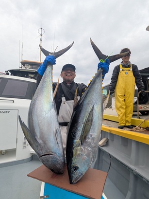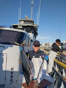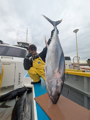 11月24日(月)今日もあたり活発で全員あたりました!キハダは浜ちゃん42kg!まァ半端ない脂脂脂脂脂!です。